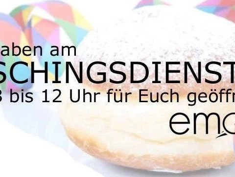 Wir haben am Faschingsdienstag von 8 bis 12 Uhr für Euch geöffnet!Faschingsdienstag 8-12 Uhr geöffnet